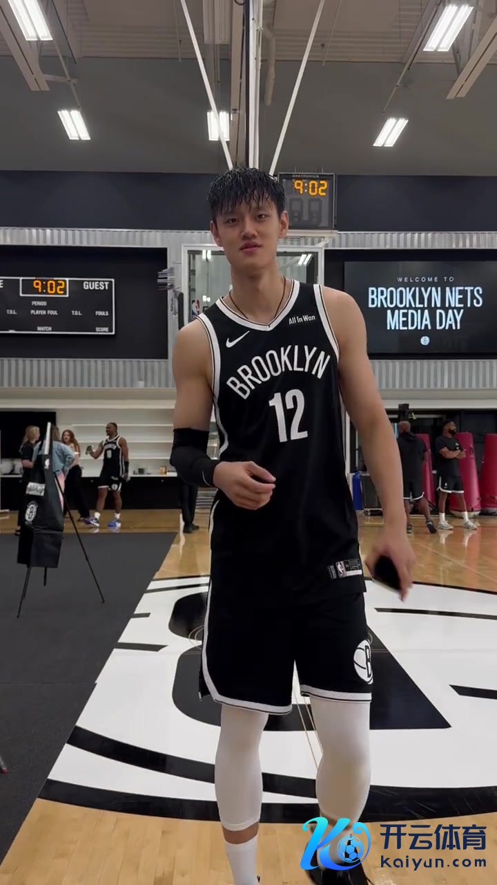 🔥帅气小伙!曾凡博在媒体日上照旧上身了篮网12号新球衣😍让球网体育信息