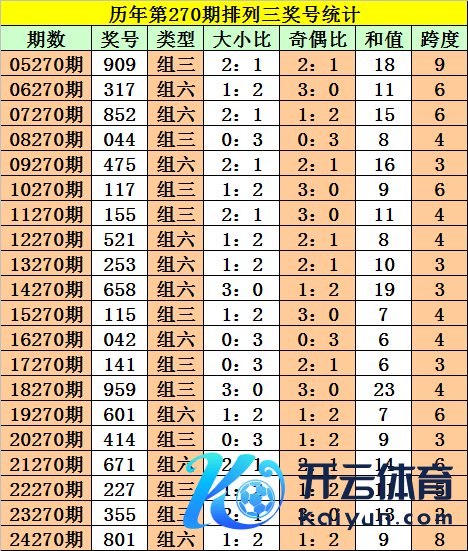 积年第270期奖号中:组三开出10次,组六开出10次。组六出现频次较低,本期重防组六。