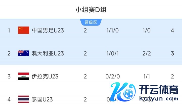 若伊拉克负澳大利亚,澳大利亚6分小组第一,中国、泰国同积4分,U23国足因相互输赢相关颓势被淘汰。