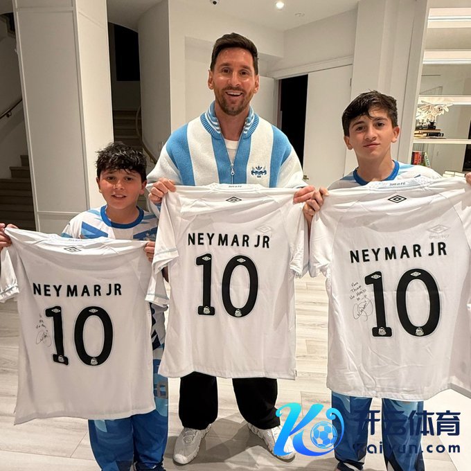 02月11日讯 桑托斯社媒晒照,梅西和他的两个犬子收到了内马尔的签名球衣。