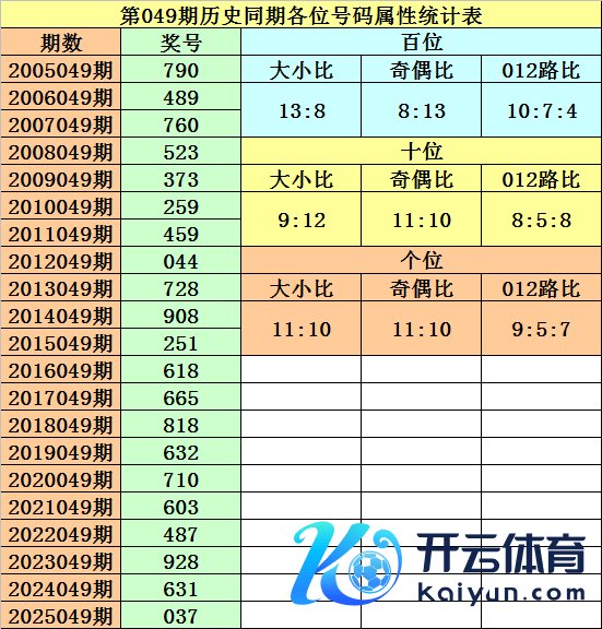 开奖回归:陈设三第2026048期开出奖号097,奖号012路比为2:1:0让球网体育信息,大小比为2:1,奇偶比为2:1,最近三年第049期同期开出奖号为:第2023049期:928、第2024049期:631、第2025049期:037。