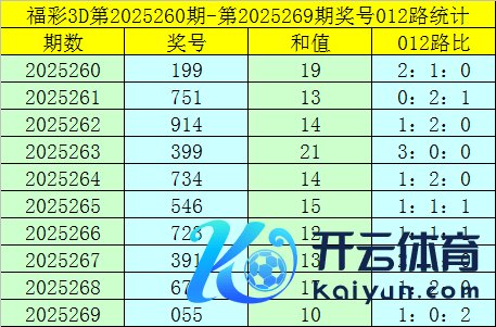 上期追念:福彩3D第2025269期开出奖号:055。奖号为组三花样体育集锦,与试机号有同号,奇偶比为2:1,大小比为2:1,012路比为1:0:2,和值为10,跨度为5。