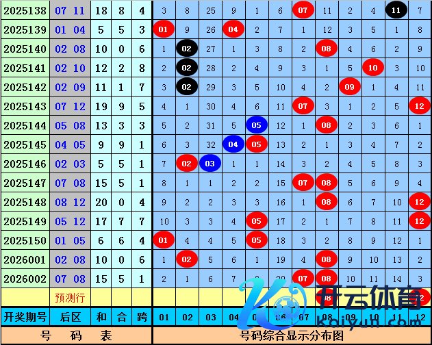 大乐透第2026002期奖号为:04 08 15 20 31+07 08。当期前区奖号012路比为1:2:2体育集锦,冷热比为1:4,莫得开出重号和连码,后区开出一奇一偶、全大组合。