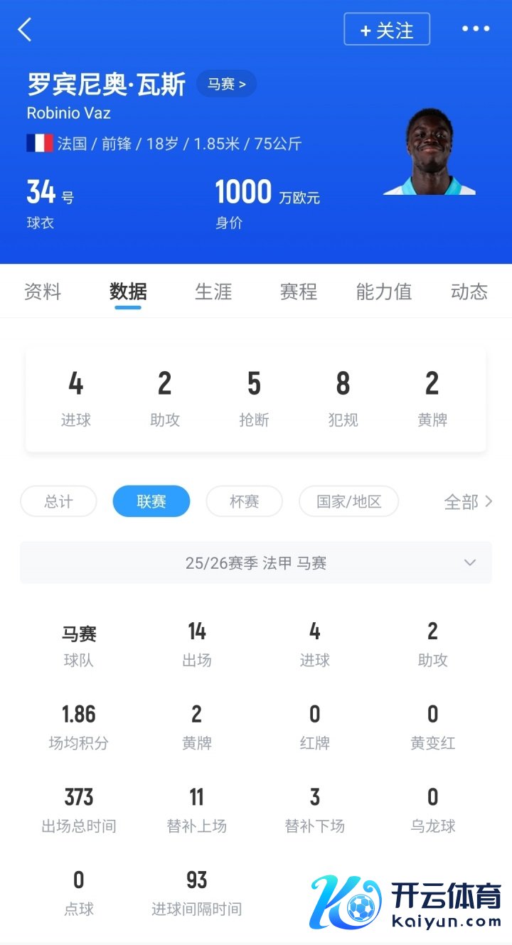瓦斯,现年18岁,法国时尚,本赛季为马赛出战14场法甲,孝敬4球2助,德回身价1000万欧。