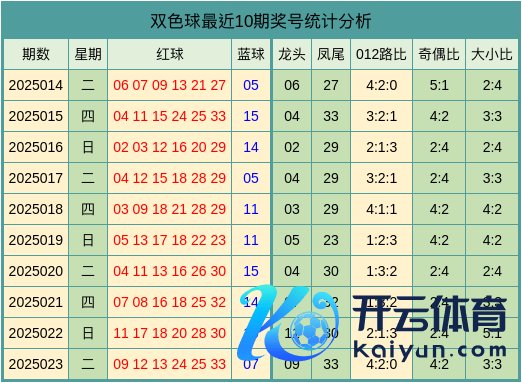 上期转头:双色球第2025023期:红球09、12、13、24、25、33;蓝球07,其中红球012路比为4:2:0,奇偶比为4:2,蓝球开零碎数号码07。