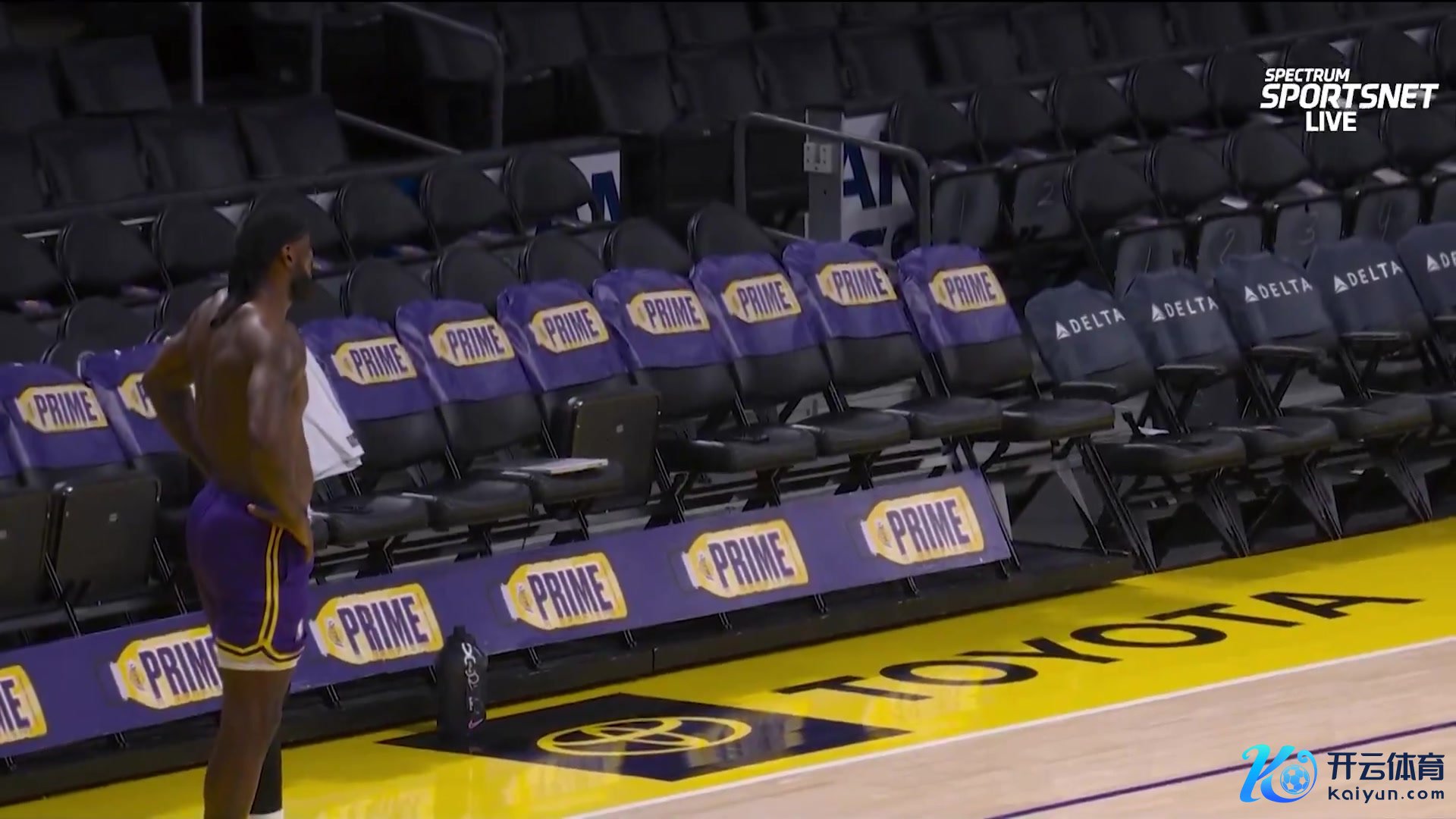 转播方Spectrum SportsNet晒出詹姆斯的考试画面,他完成了全场冲刺折返跑以及相连扣篮考试。