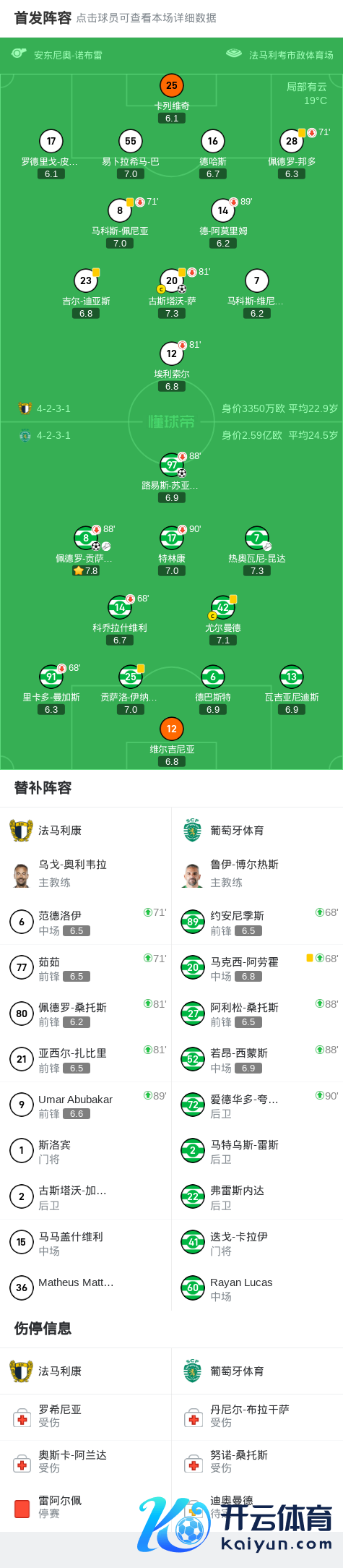 第22分钟,葡萄牙体育球员热奥瓦尼-昆达助攻佩德罗-贡萨尔维斯打入一球。