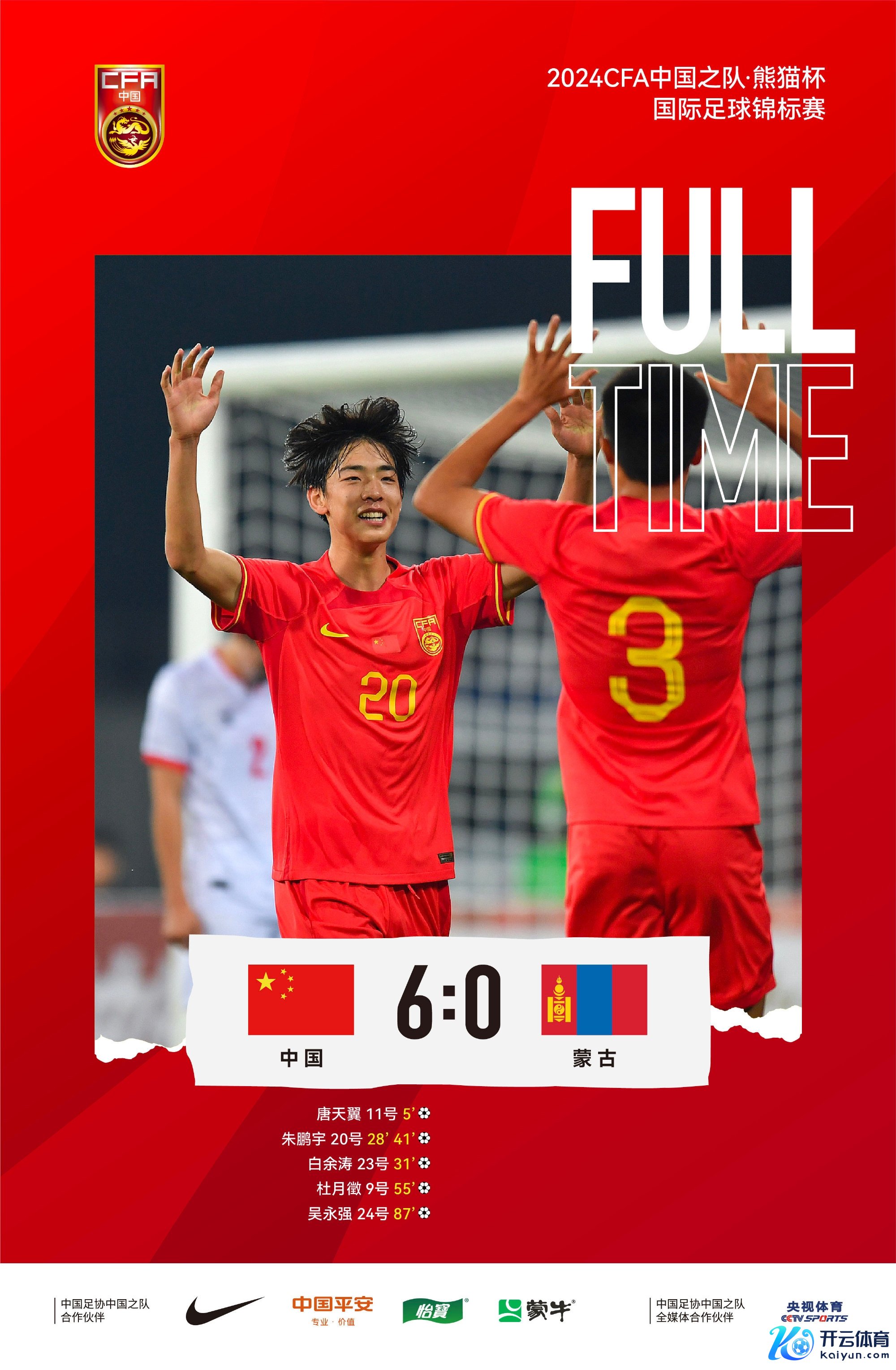 2024中国之队熊猫杯中国U-19男足首场比赛6比0征服蒙古队体育录像/图片