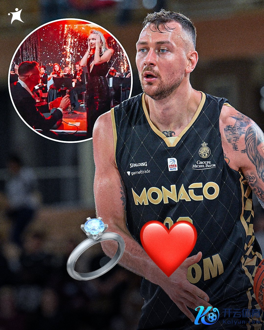 莫泰当今遵守摩纳哥篮球俱乐部,他在球队的圣诞派对上向女友求婚,女友极端惊诧,并忍不住流下眼泪。