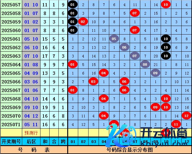后分别析:上期后区奖号为05+11,开出一大一小组合,上周六后区奖号开出09+10,最近十周六后区奖号大小比为10:10,大小 号码走势基本终点,本周六看好大小 号码不竭均衡,温煦两码06、10。