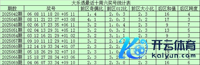 大乐透第2025071期开奖号码为:01、08、25、31、33+05、11。其中前区奖号首尾间距为32,和值为98,奇偶比为4:1体育赛事直播,大小比为3:2。