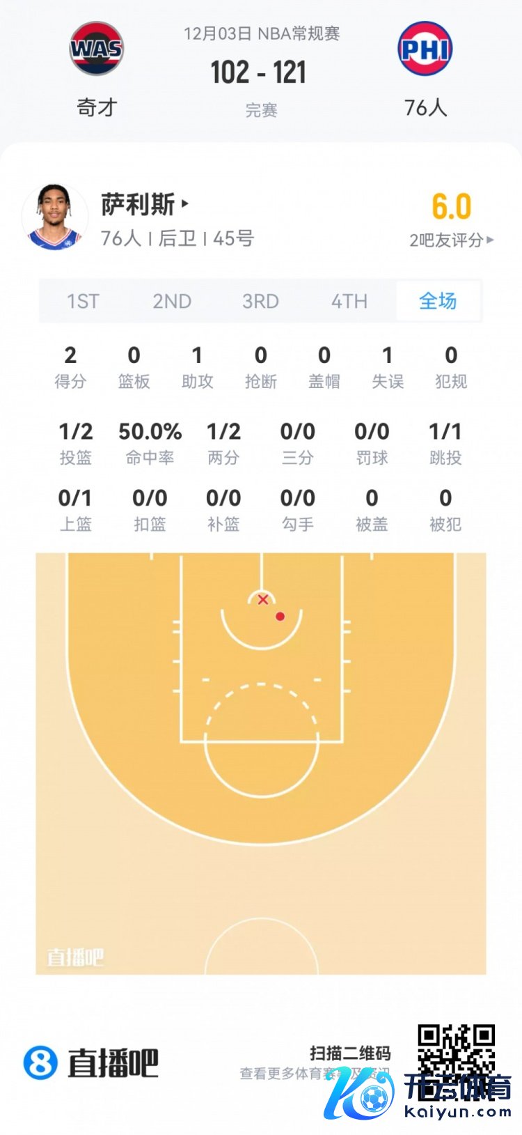 76东说念主落第秀萨利斯 登场7.9分钟