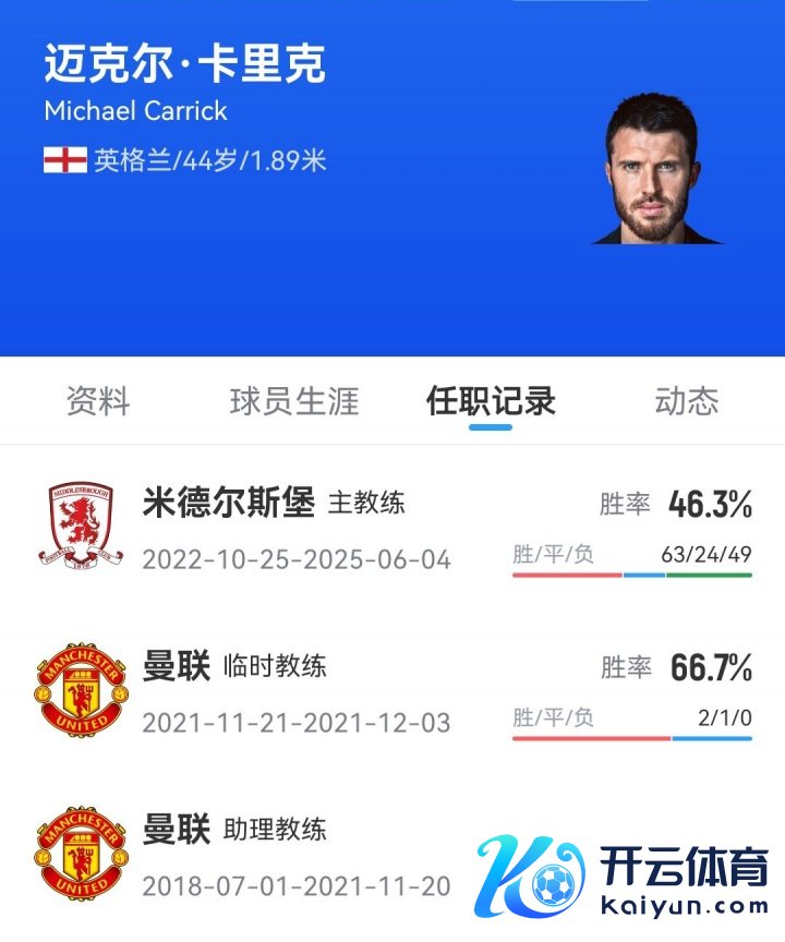 卡里克球员技能在曼联效率12年,2018年在曼联退役后就在球队担任助教,辅佐索尔斯克亚。2021年索尔斯克亚下课后,卡里克担任临时主帅带队3场,曼联得到2胜1平的战绩,之后朗尼克接办曼联,卡里克也离开了教授组。