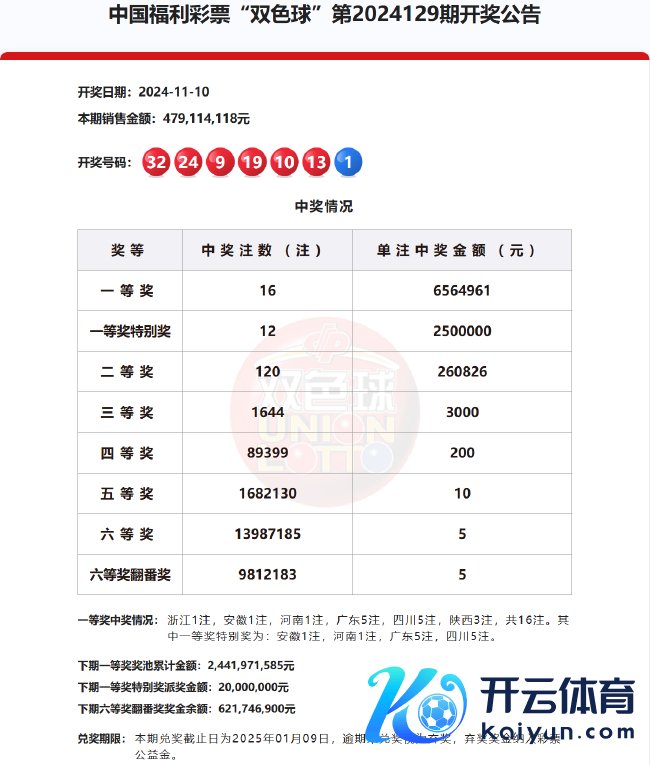 另外,本期一等奖相称奖3000万元已悉数派发,按照派奖礼貌,下期(第24130期)一等奖相称奖派奖金额为2000万元,下期六等奖翻番奖奖金余额为621,746,900元。