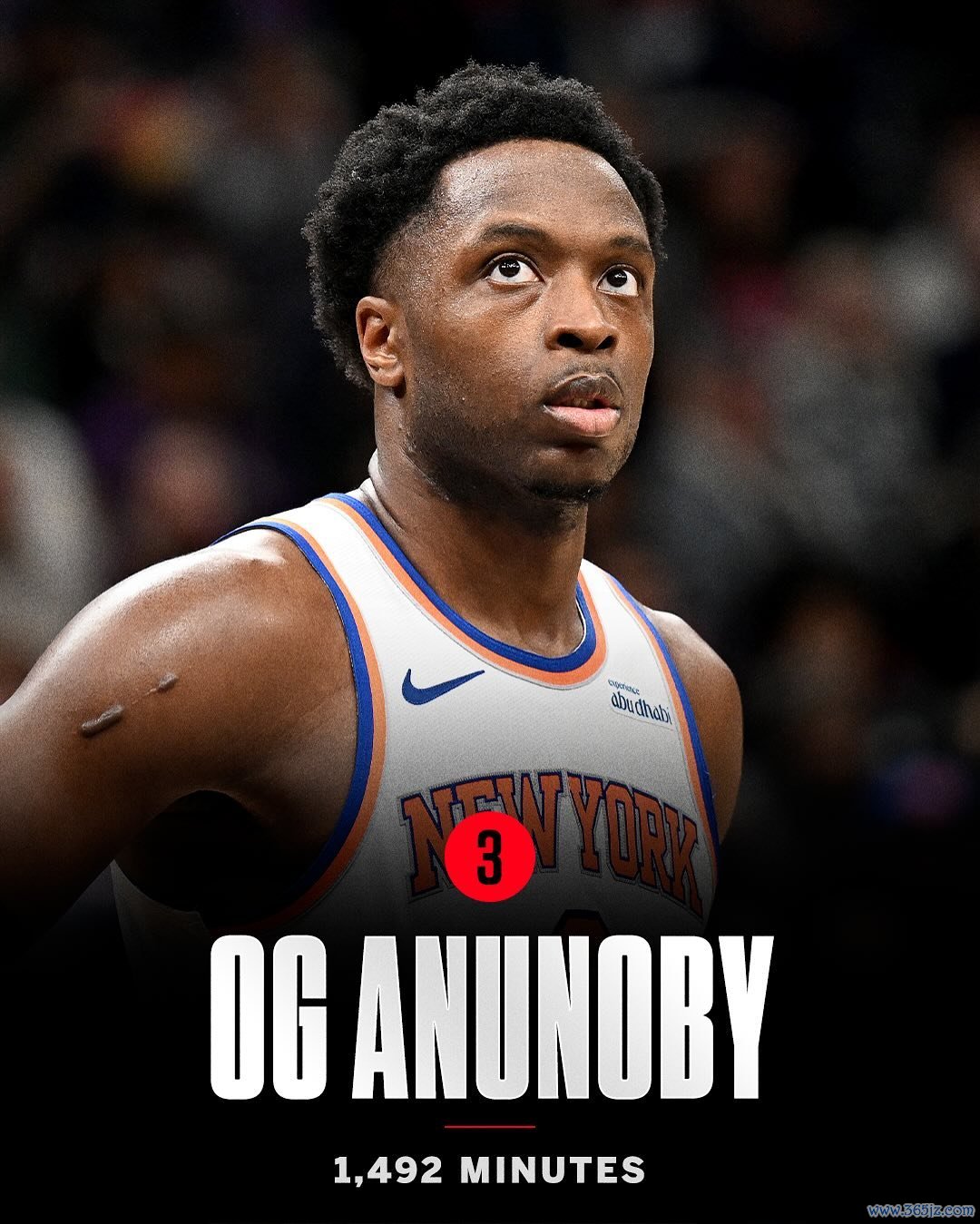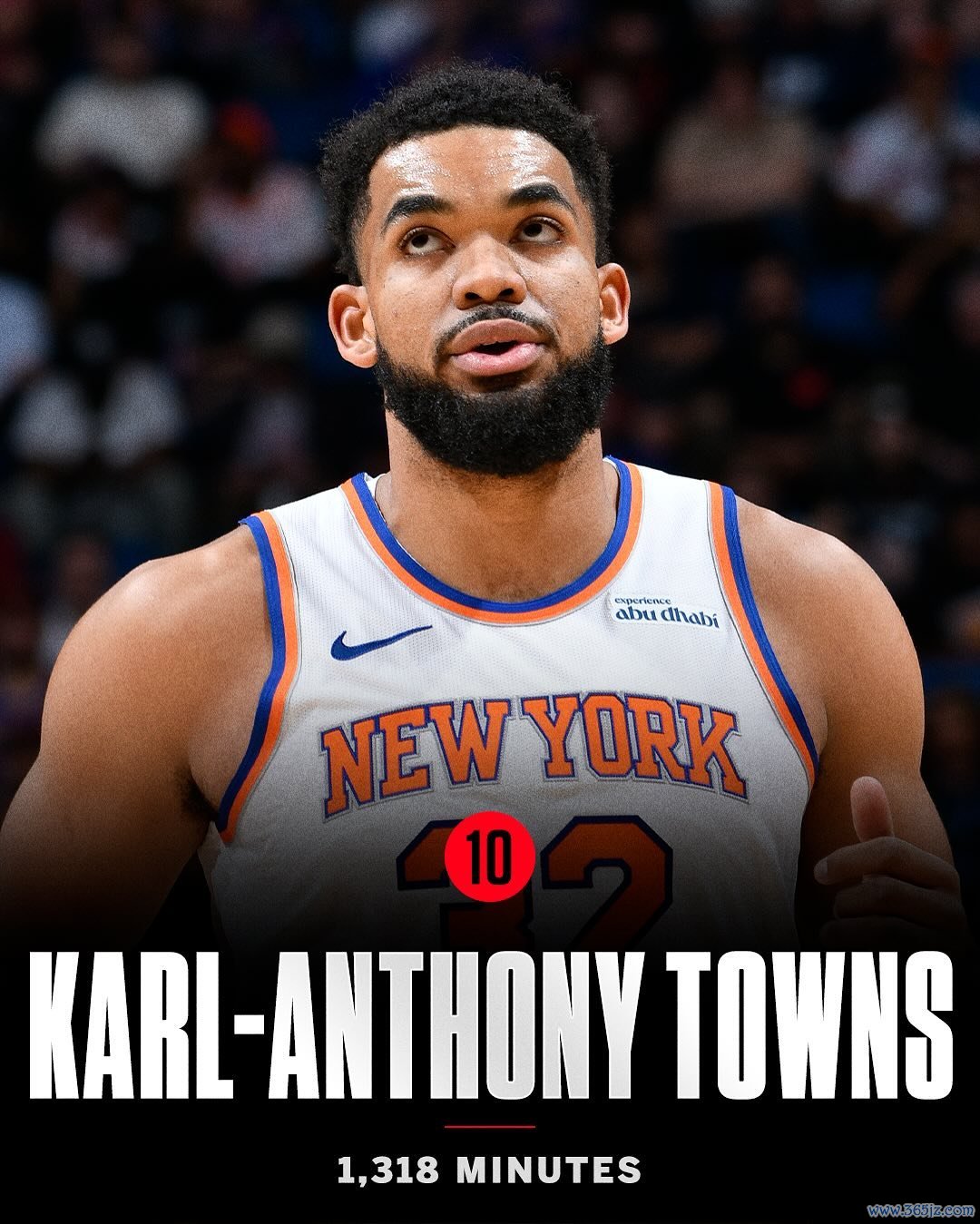 😳本赛季出场本事TOP10!尼克斯首发5虎均榜上知名!前5有4个!体育赛事直播