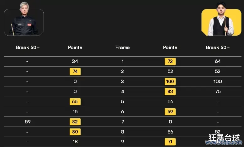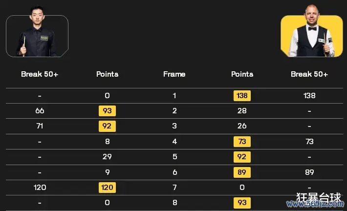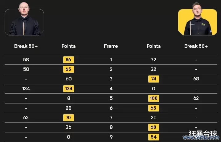 第三位晋级的是霍师父,这场比赛其实还挺精彩的,霍师父破百开局后连丢两局,第二局是吴宜泽先手霍师父翻盘未果,第三局是霍师父先手失实被吴宜泽拿下。不外随后三局霍师父连胜平直到了赛点,吴宜泽拼出一杆破百救了一个赛点后缺憾出局,总体来说照旧结识性稍有不及,而况霍师父本赛季的景象也不俗。